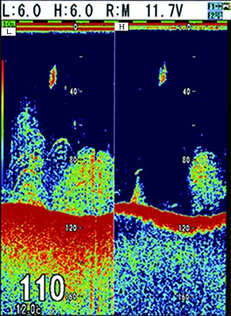 Know exactly the bottom area covered by the low and high frequency sound beams. This can help you target the fish directly under the boat or off to the side.