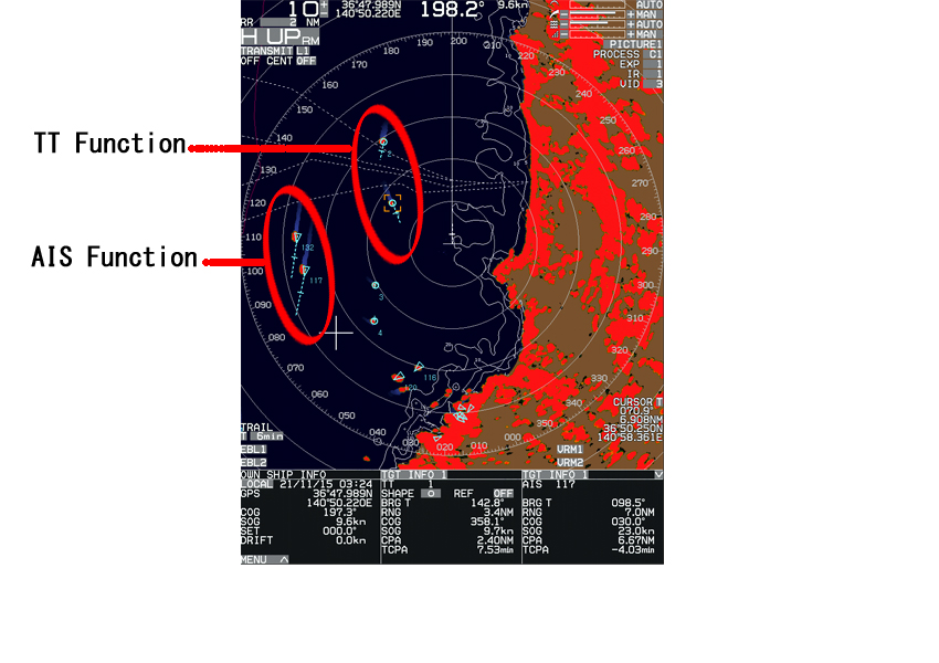 C-Map chart (NT MAX)* can be overlaid on the radar screen to provide clear radar pictures of coastlines, buoys, and other features. C-Map NT MAX “World Wide” back ground chart is built-in as standard.