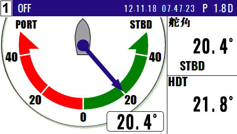 航法情報、ナビゲーショングラフ、ハイウェイ、プロッター、コンパス、ROT、舵角、距離情報、一般情報、天気情報、カスタム情報など。19種類の表示モードを選択できます。
