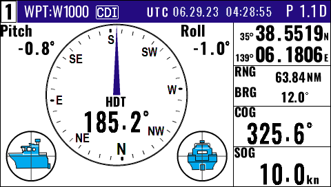 方位・位置・速度・ローリング・ピッチング・ヒービングデータを出力